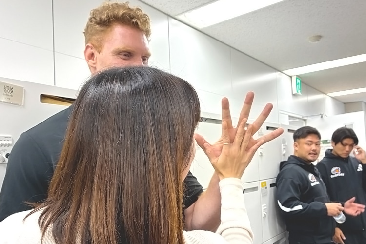 今回お越しいただいたのは、森川 由起乙選手(プロップ)、サム ジェフリーズ選手(ロック)、呉 季依典選手(フッカー)、安田 昂平選手(ウイング)の4名。