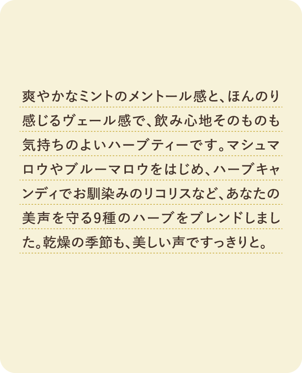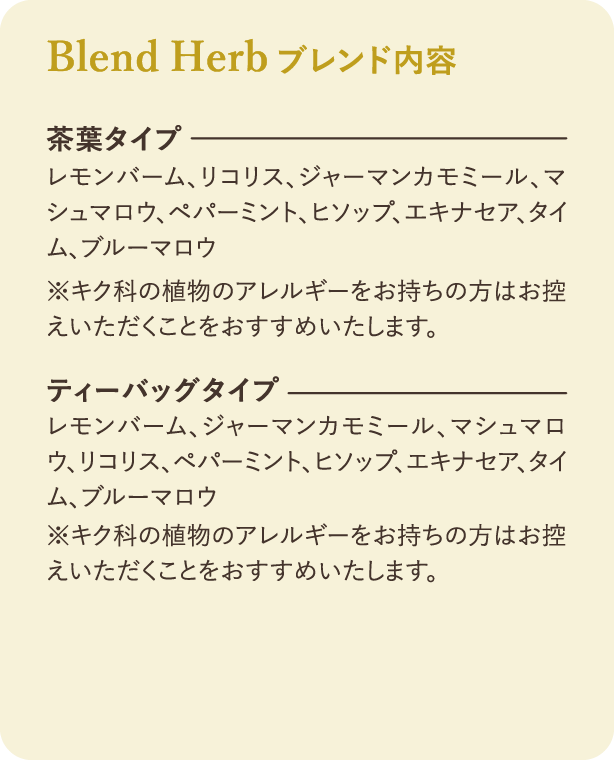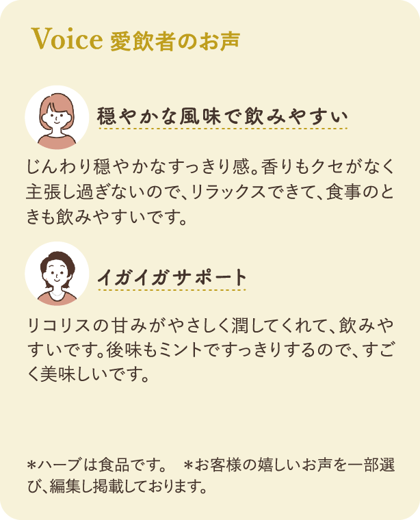 3大ハーブをブレンドしたハーブティー。
