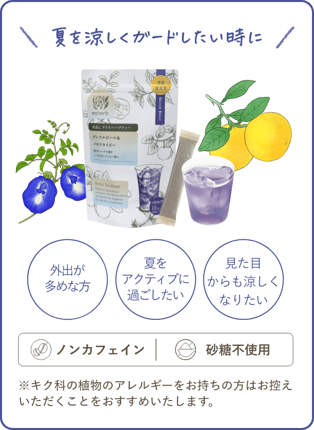 限定の「水出しグレフルピール&バタフライピー」を濃いめに作り、炭酸水で割ってバニラアイスをのせてみて。簡単に楽しめます!
