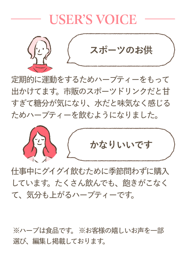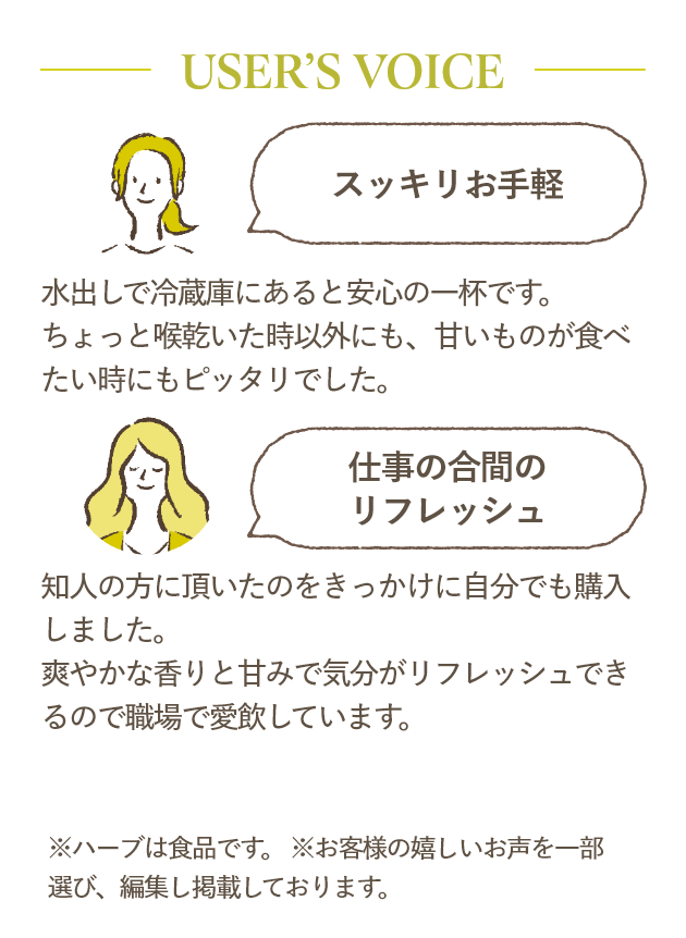 ※ハーブティーは乳幼児を対象とした飲み物ではありません。