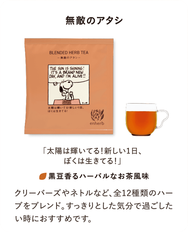 世界中からこだわって集めたハーブたちは、それぞれにパワフルな生命力を秘めています。enherbのハーブティーは美味しさへのこだわりはもちろん、自然のチカラをやさしく穏やかに取り入れることができるよう設計しています。